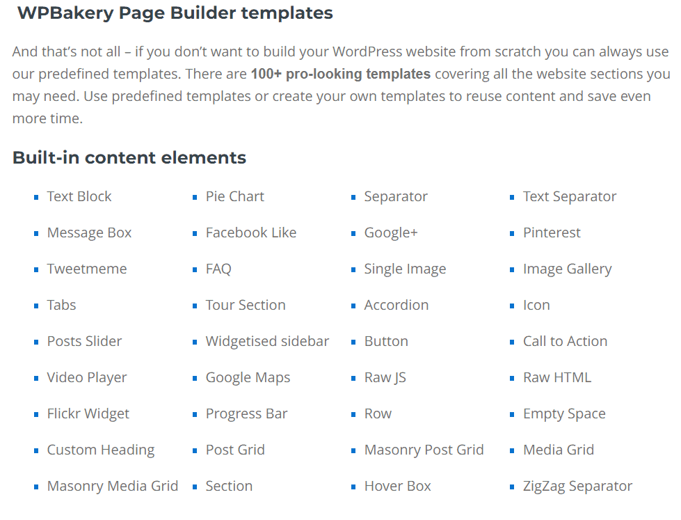 WPBakery has a big library of content elements, like text blocks, images, buttons, and more. These elements can be easily customized and arranged to create unique layouts.